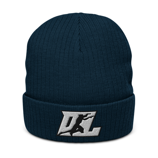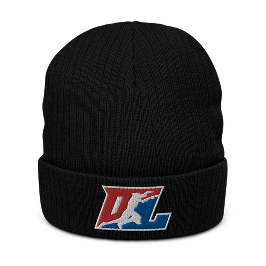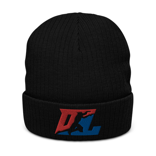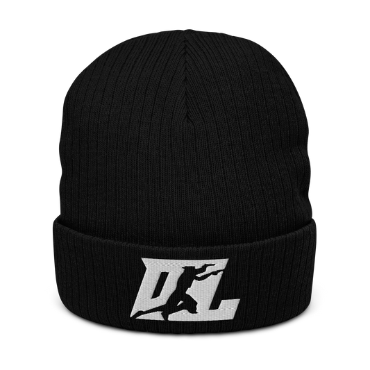 Ribbed Knit Beanie Color with White Outline DL Logo