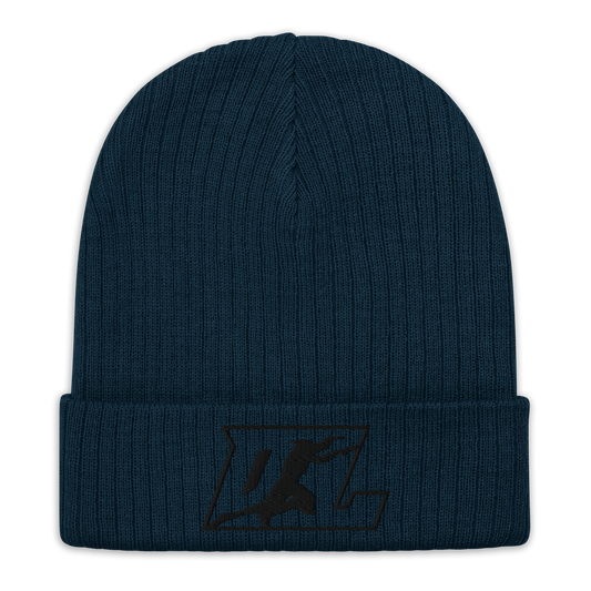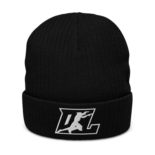 Ribbed Knit Beanie Black with White Outline DL Logo