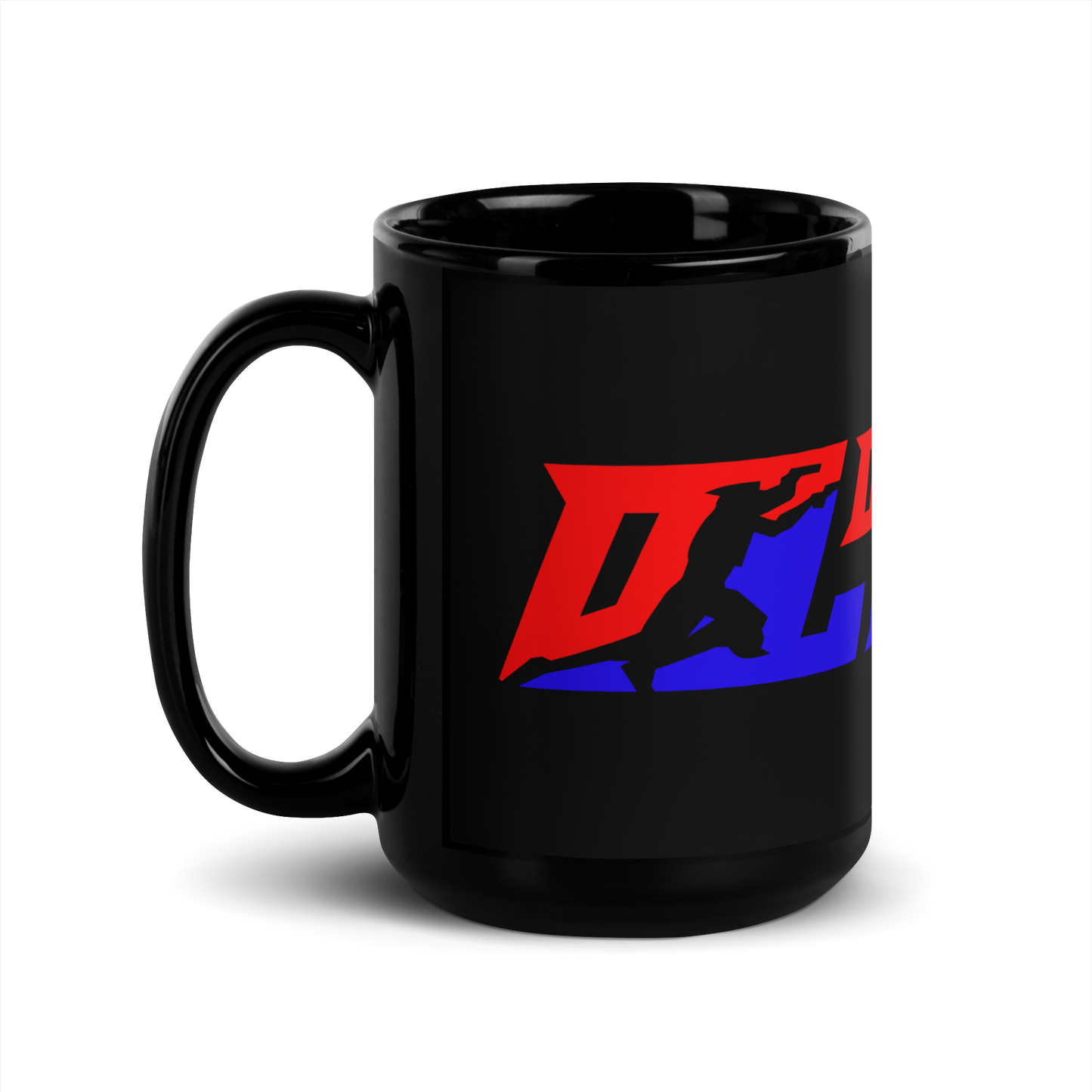 Taza negra con logotipo DL ancho
