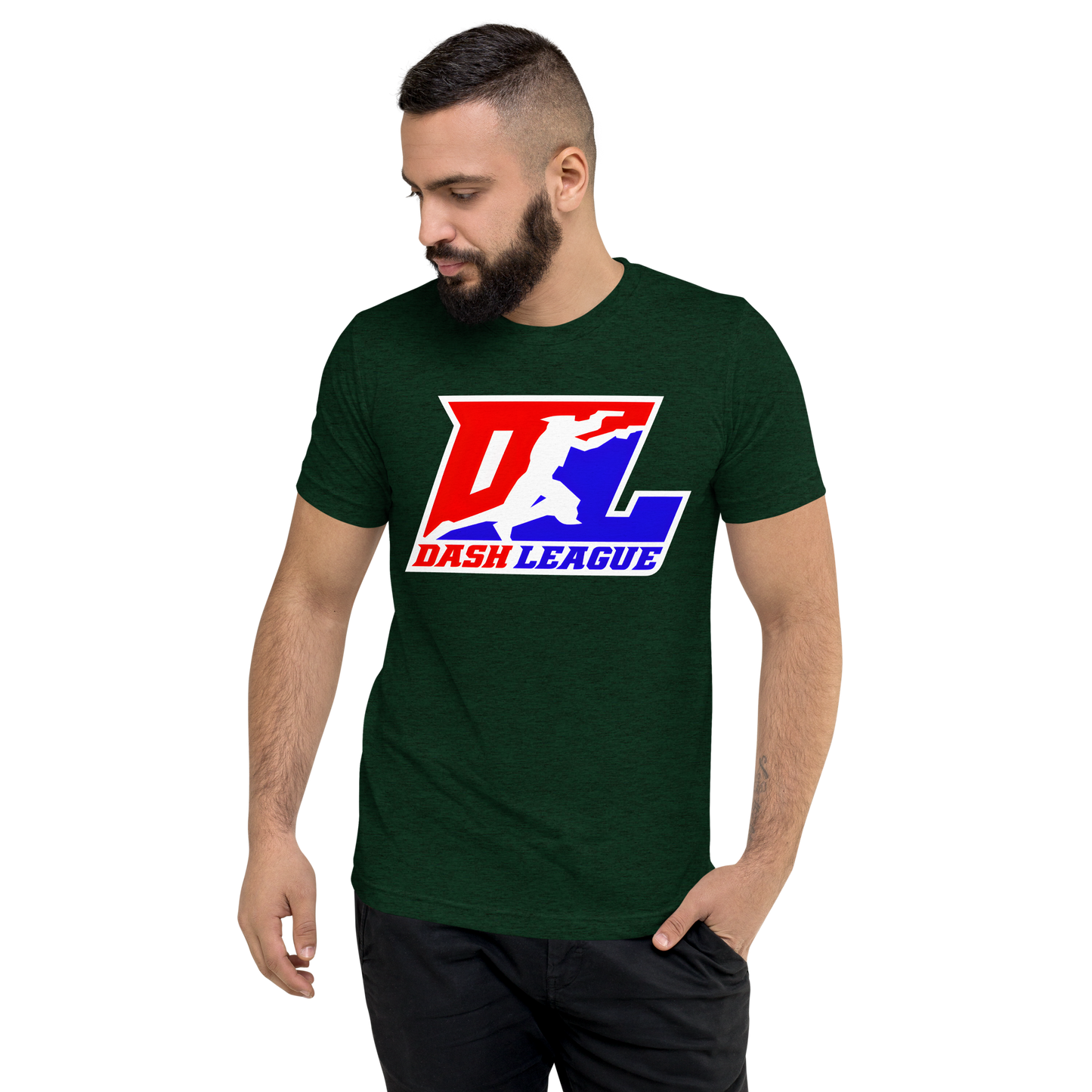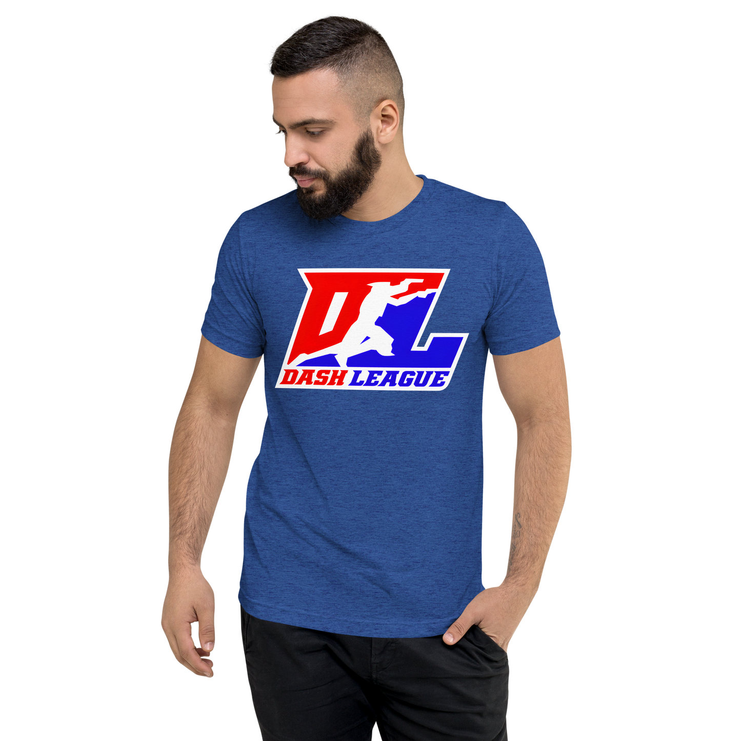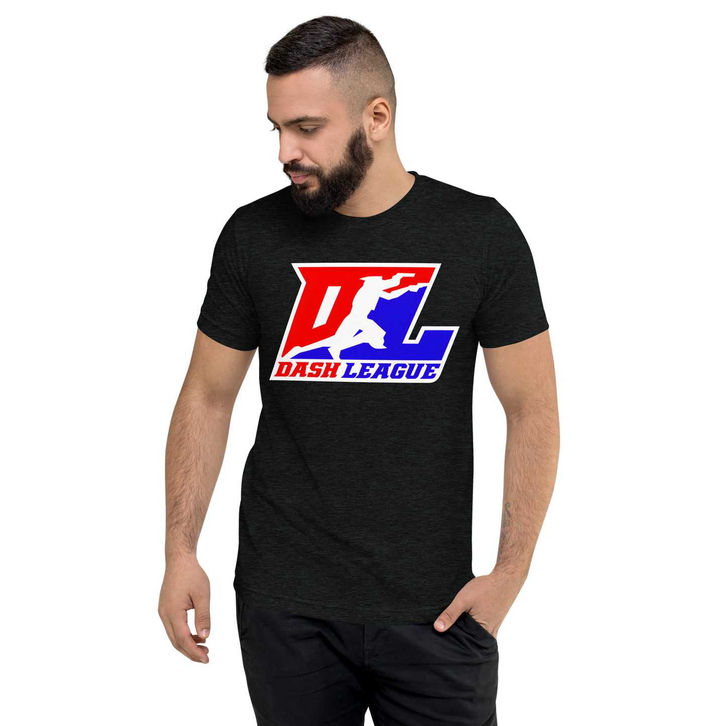 Camisa unisex de mezcla de tres colores con logotipo DL en contorno blanco