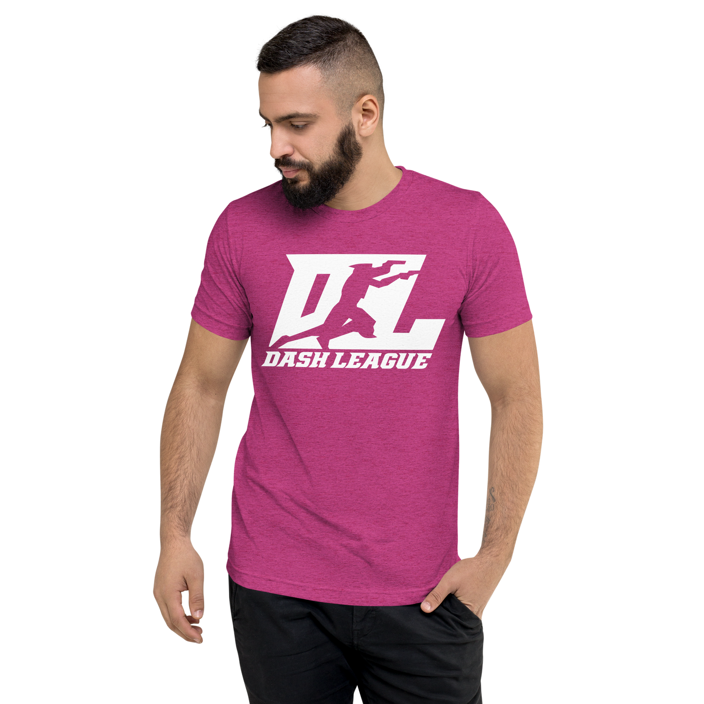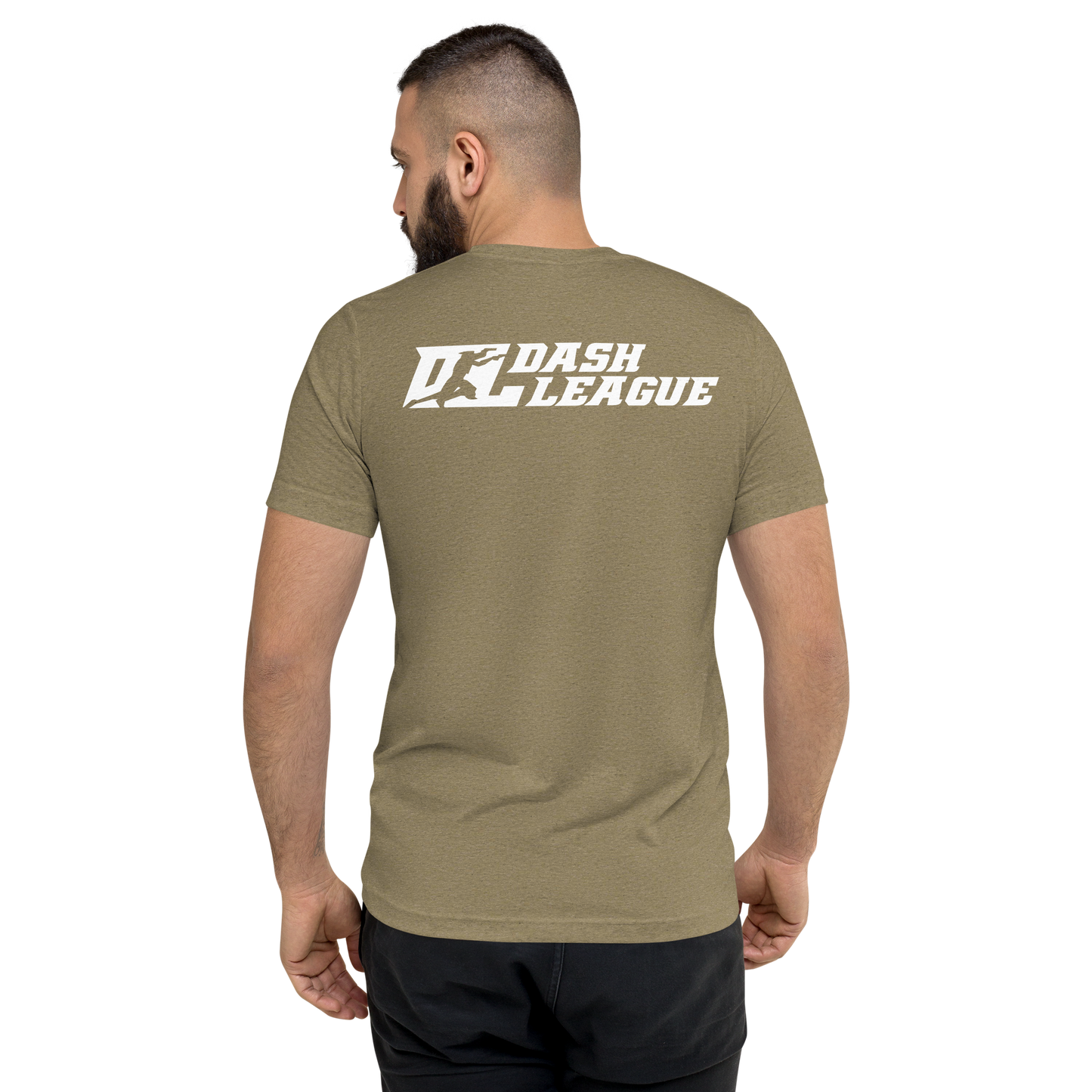 Camisa unisex de mezcla de tres materiales con logotipo DL blanco (parte delantera y trasera)