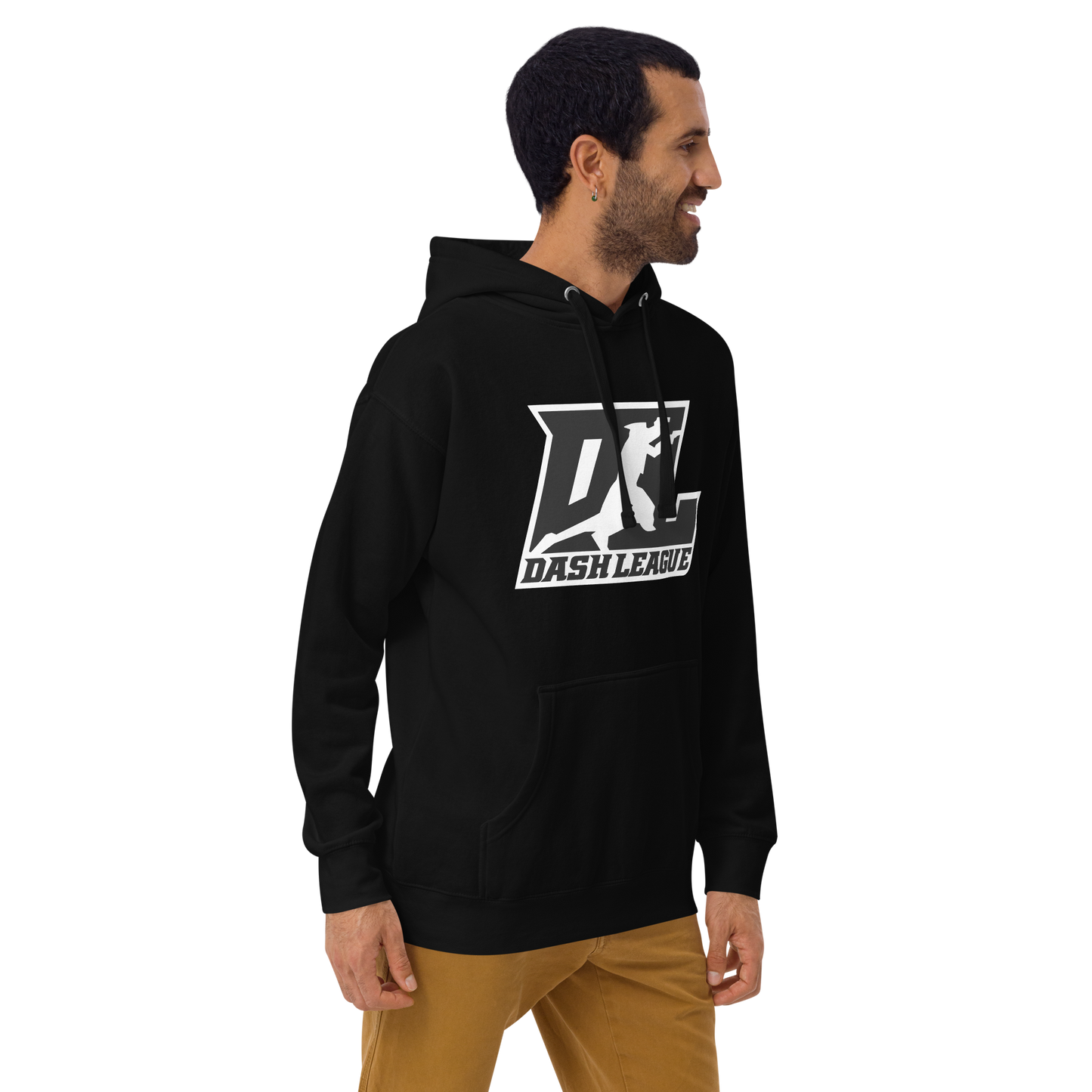 Sweat à capuche unisexe noir avec logo DL à contour blanc